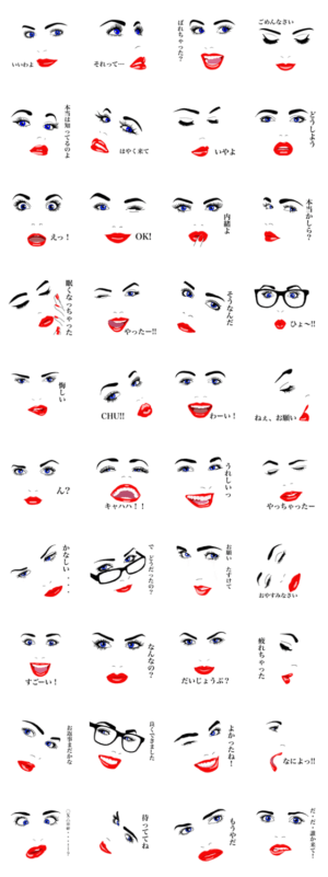 大人の女性のためのスタイリッシュでセクシーでちょっとツンデレなスタンプです。魅惑の瞳と唇で男性のハートをわしづかみ。