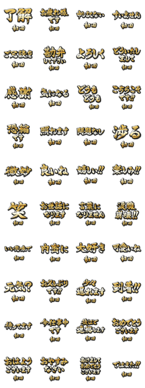 【和田】専用。黄金の筆文字スタンプ。キャラなし、デカ文字。お値段そのままで超豪華、超ゴージャス。贈答用に最適。
