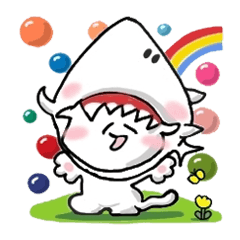 ネコがサメの着ぐるみを着てるオリジナルキャラクター[にゃんチョ☆]スタンプです。Yuki.A@kiridango より発売