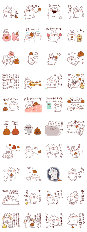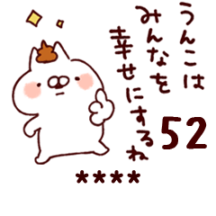 名前スタンプシリーズねことうさぎ/専用52/***部分にお好きな言葉を入力後,右上の「完了」をタップ/カスタム/うんこ/うんち/面白い/お下品/ネタ/ギャグ/山田まぽん作