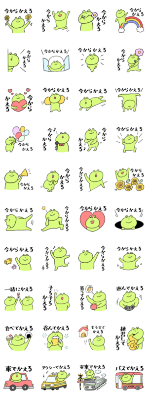 今から帰るカエルのスタンプ2 スタンプ画像一覧