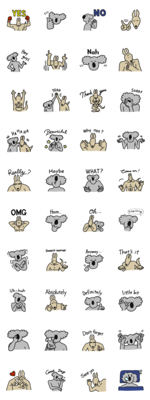 ゆる英会話〜カンガルーとコアラを添えて〜 スタンプ画像一覧
