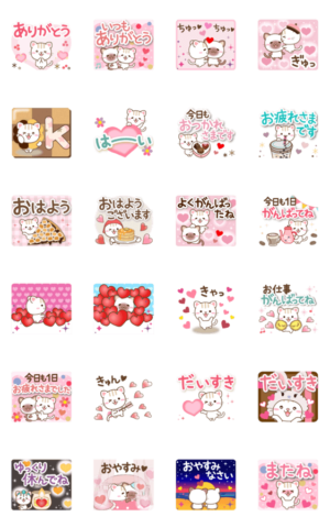 大人のためのねこのトラとシャムが思いを伝えるラブラブスタンプです。大切な方を応援したい人や思いを伝えたい人におすすめです。可愛く動く愛らしいスタンプです。little lion house より発売