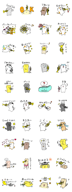 猫とトランペット・ラッパのゆるスタンプ♪ スタンプ画像一覧