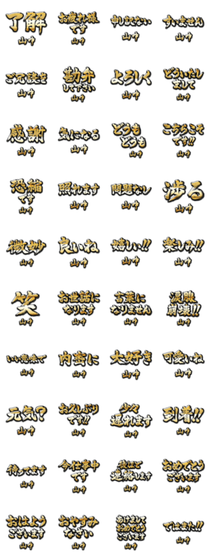 【山中】専用。黄金の筆文字スタンプ。キャラなし、デカ文字。お値段そのままで超豪華、超ゴージャス。贈答用に最適。