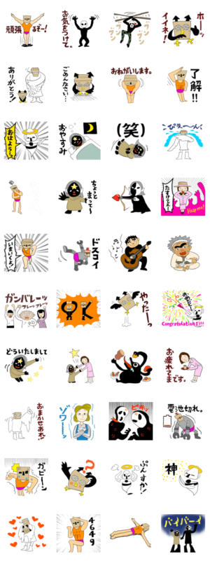 悲しみを内に秘めて、カミブクロをかぶった時に少し強くなれたきがした。カミブクロ仮面 マンガ版 カミブクロ仮面 第二話 『怪盗月男現る』 記念LINEスタンプです!KOZO CHIBA より発売