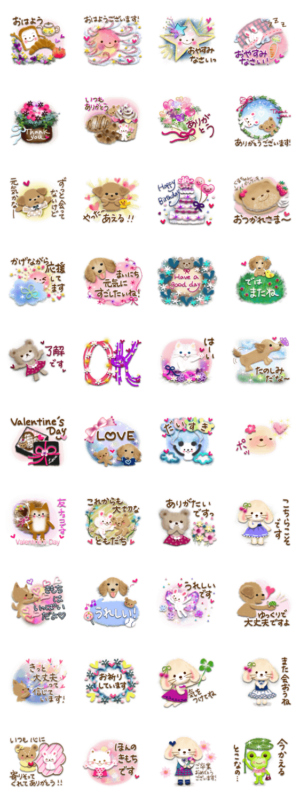 大切なかたへ気持ちをつたえるスタンプです。バレンタインは女子から女子へ贈る友チョコスタンプもあります♡毎日つかえる定番の挨拶もセットになっています^^