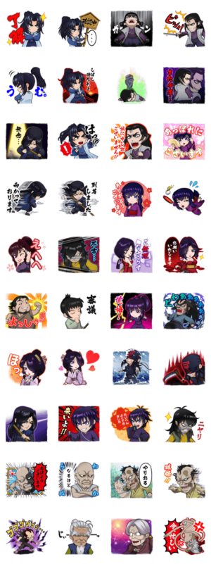 甲賀組十人衆と伊賀組十人衆のミニキャラスタンプが登場!弦之介、朧、天膳、豹馬など20キャラ全40種類!!日常会話や趣味トークを盛り上げます!