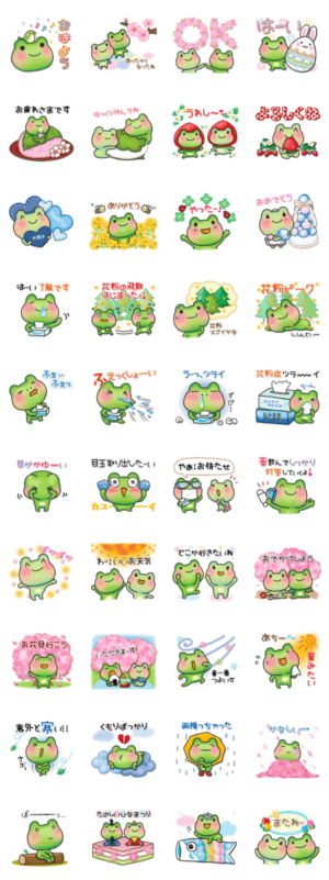 かえるちゃん春のスタンプ。花粉症に悩まされる季節ですね…ほんとツライcoyuri より発売