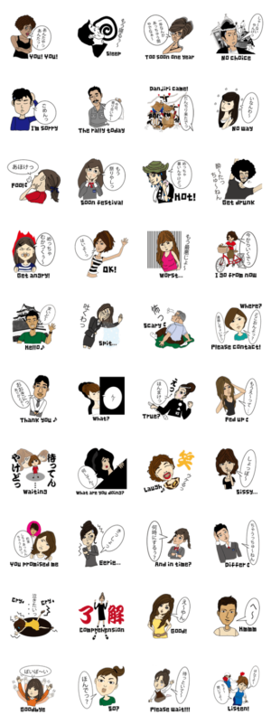 ご当地!大阪泉州岸和田地車祭りの男女たち スタンプに書いてある文字一覧