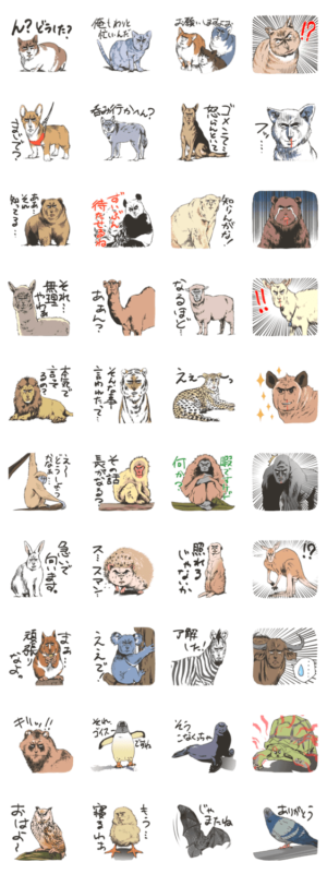 ゆるカワでもなく、キモカワでもない、何かがおかしい。どこか変な動物達のスタンプです。甚八 より発売