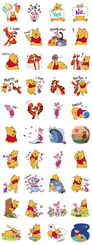 アニメのプ―さんの絵柄でイラストだけのスタンプが多いので使いやすい。プーのぽってりしたおなかが愛らしいです。