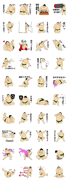 かわいい力士「おすもうちゃん」スタンプ 第2弾。日常会話にとっても便利。相撲大好きなあなたも、そうでない方も使ってみてください。