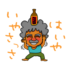 酒臭くていい加減だけど、人情味溢れるおっちゃんです。沖縄人がよく使ううちなーグチスタンプを揃えました。
