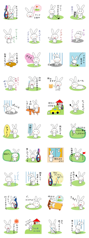 ゴルファーのためのスタンプです。うさぎのゴルファーが語ります。日常会話にも使えるあいさつもたくさん入っています。