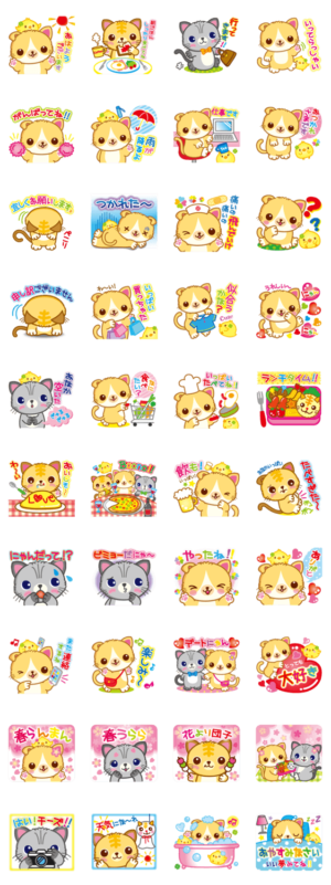 手足短く可愛いマンチカンが超おしゃべりになってパワーアップした第2弾です。日常生活からお花見まで…♪カラフルな春らんまんスタンプを大好きな人に送ってハッピーに♪