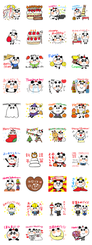 おめでとう、ありがとうを伝えるパンダくん。お誕生日はもちろん、入学、卒業、結婚、ハロウィン、クリスマス、お正月、バレンタインなどのハッピーイベントのおともに♪ともいろ より発売