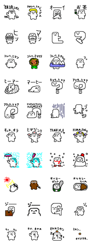 もっさん☆2 ~フォーヒマピープル~ スタンプに書いてある文字一覧