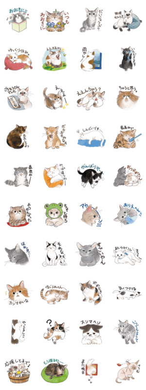 関西弁でいろいろ伝える猫たちのスタンプ スタンプに書いてある文字一覧