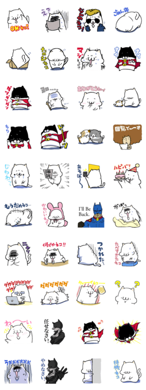 白ねこ「おもちまる」は、トラブルの時は「ニクキューマン」に変身して皆を救う!ちょっと頼りないヒーローと仲間達のスタンプです。