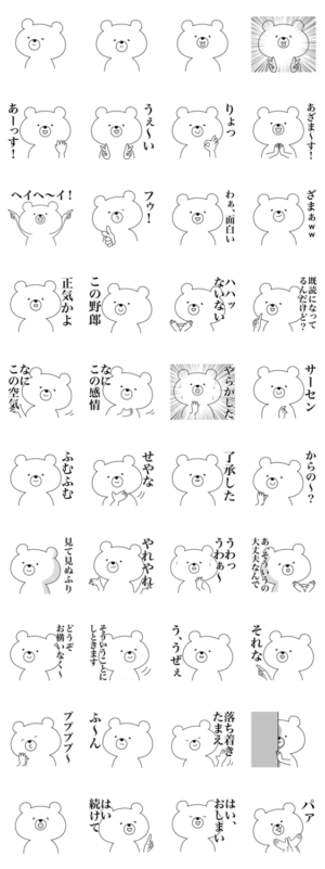 愉快でうざカワイイ熊さんのスタンプです!人をおちょくるのに効果的なこと請け合い!エイプリルフールなら使いこなせるかも!さつまいもくん より発売