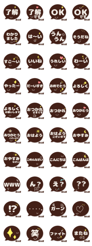 あんぽ専用デカ文字コーヒー色スマイル スタンプ画像一覧
