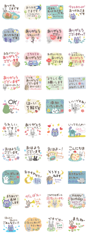 長めのメッセージで気持ち伝わる!毎日よく使う言葉をセットにしました。ひらりーー の大人の気遣いシリーズ3 挨拶/敬語/うさぎ/ふくろう/大人/猫/鳥ひらりーー より発売