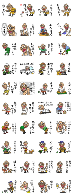 仙台弁おじいさんスタンプ第二弾です。宮城県仙台市に住む元気なおじいさんが、宮城県の方言、宮城弁、仙台弁を喋ります。Brody Machine より発売