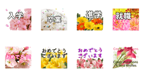 本物の花を添えて送る卒業・入学祝い用のスタンプです。卒業・入学・進学・就職・おめでとう etc 写真 実写 リアル フラワー flower 動く