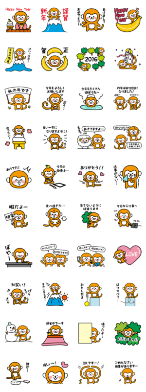 さるの年賀状、年末年始挨拶。猿年スタンプ スタンプ画像一覧
