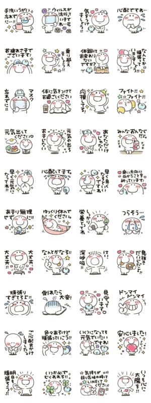 まるぴスタンプ第63弾!体調が悪い/体調不良を気遣う/コロナウイルス/インフルエンザ/風邪/除菌/マスク/自然災害/お大事に/手洗いうがい/気遣い/50代/60代/笑顔/元気にかなぴ より発売
