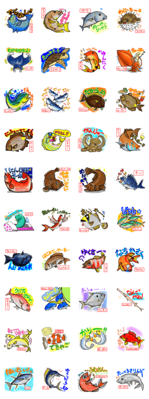 日常会話で使えるとっても楽しいスタンプ♪40種類の珍しいお魚たちを使ってみんなで会話を楽しんじゃいましょう♪