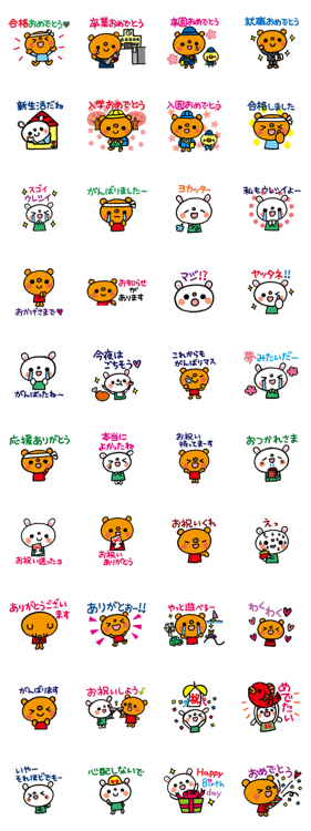 合格、卒業、入園入学、就職などなど、おめでとうとありがとうのスタンプです。KAKKOBOX より発売