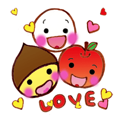和菓子屋さんから逃げてきた、りんごまんじゅう、栗まんじゅう、だいふく餅の仲良しトリオのスタンプです!