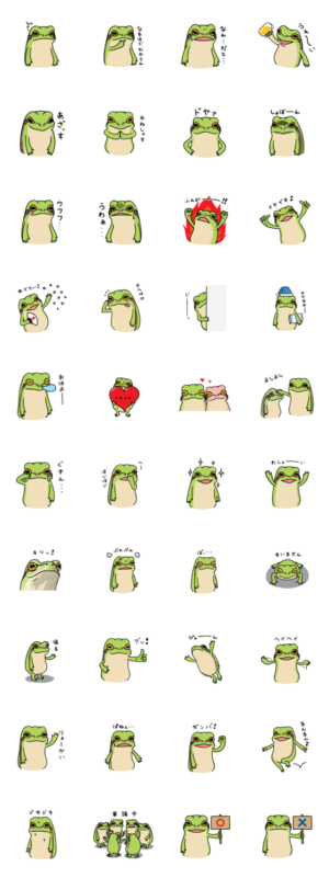 リアル過ぎないデフォルメされたイラストはかわいらしさを残しつつ、ちゃんとカエルの印象を受ける。イラスト自体雑な印象も受けず、使いどころも多い為カエル好きには非常に良いと感じる。
