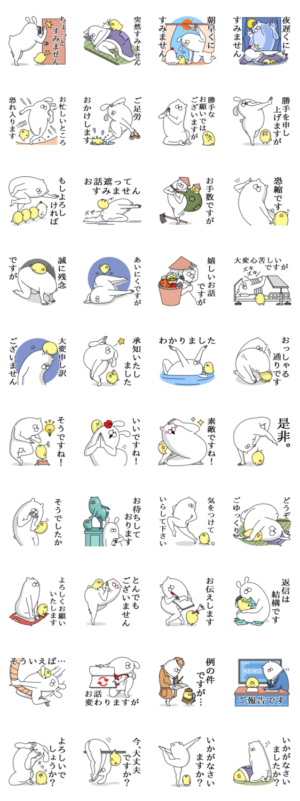 柔軟ゆるいうさぎくまひよこが優しい言葉に。前置きや敬語。ビジネス仕事会社学校等で先輩同僚に。日常会話文字入り。人型動物シリーズ4。イラストレーター【ちぎらみお】