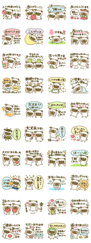パグちゃんの春に使えるスタンプセットです♡ 家族、お友達、大切な人へ♡体調を気遣う言葉もたくさんいれました! コロナウイルスに負けずに頑張りましょう!ぴよたぬき♡ より発売