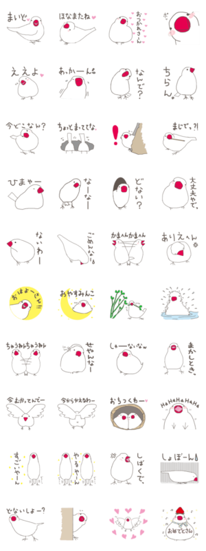 関西弁を話す白文鳥のスタンプ。ピンクのくちばしがキュート♪まちまち より発売