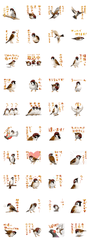 いつもひかえめなスズメちゃんのスタンプです。気が小さくてシャイだけど、今日も健気にがんばります。