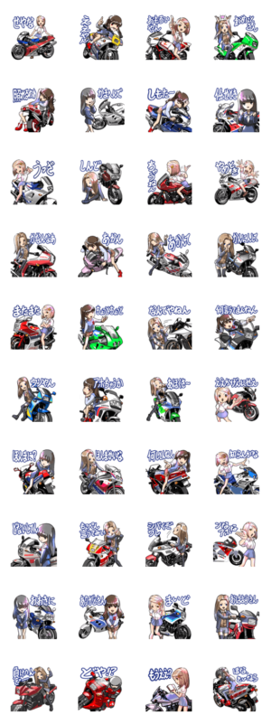 クルマやオートバイ乗り用スタンプです。他の会話用には車やトラックのスタンプも別途ございます懐かしい昭和エンジンのバイク、関西弁でいかがでしょうか。