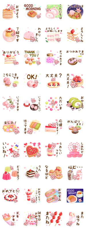 ピンク色のリスと、桜や苺を使った春らしいスイーツが盛りだくさんなスタンプです。毛玉ピストル より発売