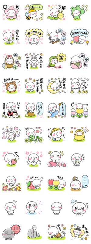 年中使える優しいパステルカラーを使用したしろまるスタンプです。内容を厳選し、使いやすい内容のみを揃えました。【作:いしいともこ】