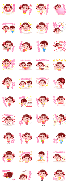 スイーツのイメージが強いぺこちゃんのスイーツ系スタンプ。可愛くて使いやすい。