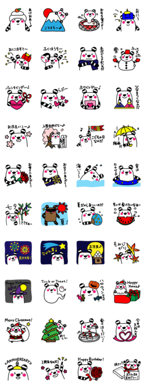うたねのボーダーパンダのスタンプ第3弾は、七夕や海、花火大会等、夏の季節や、ハロウィン・クリスマス等のイベント、お誕生日や記念日等に使えるかわいいスタンプです。