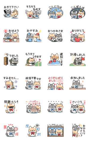 挨拶やリアクション、お返事が豊富なしばいぬツインズ第二弾スタンプが登場!前回の敬語シリーズと合わせても使えます♪DECOR より発売