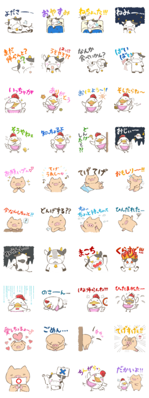 畜産王国みやざきの「うし」「ぶた」「とり」を宮崎弁スタンプにしてみました。使ってもらえたら、てげうれし~スパークジャパン株式会社 より発売