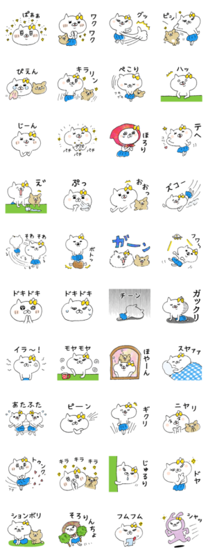 女子力高めな白猫、ネコ子のオノマトペ(擬音)スタンプです。「ドキドキ」「ぴえん」「ニヤリ」など。様々なシチュエーションに使えるので、ひとつあるととても便利です!OTOBOOK より発売