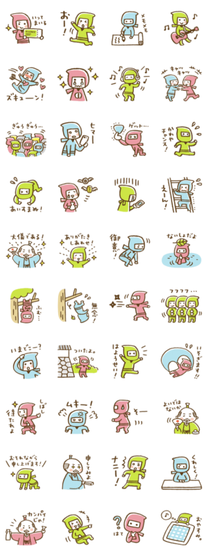 音楽&ライブが好きな忍者のスタンプです。殿もいるよ。ウチダミユキ より発売