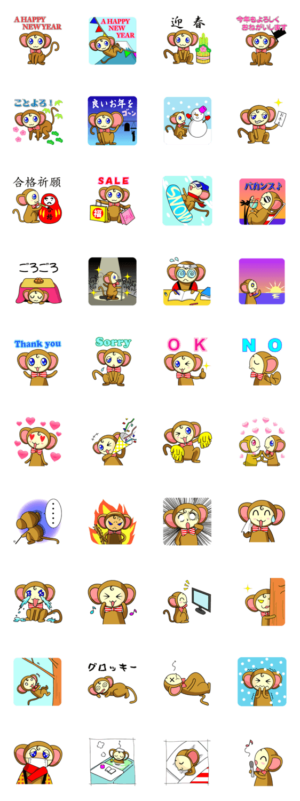 かわいいオシャレなお猿のスタンプです!申年のお正月に!あけおめことよろ、年賀状代わりに便利なおサルのスタンプが勢揃い。受験生応援、合格祈願スタンプもあります!ナシダ サヤ より発売