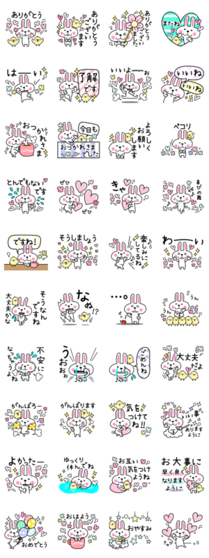 おしゃわかgirlsとお友達の♡うさこ 初!単独スタンプです♡ ほんわか優しくいろんなお返事ができるスタンプです♪chaco より発売